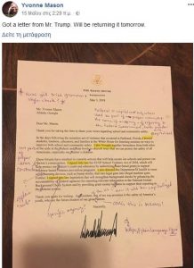 Ανορθόγραφος ο Τραμπ – Δασκάλα του έστειλε πίσω επιστολή διορθωμένη (φωτο)