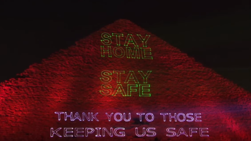 Κορωνοϊός στην Αίγυπτο: «Μείνε σπίτι» το μήνυμα στην φωτισμένη Μεγάλη Πυραμίδα του Χέοπα