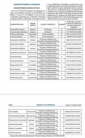 ΑΣΕΠ-3Κ/2018: Διορισμοί στο Δ. Αιγάλεω (ΦΕΚ)