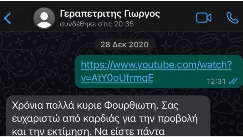 Μάλιστα, όπως αποκάλυψε ο ίδιος ο Φουρθιώτης, όταν ανέβηκε και στο youtube, έστειλε το επίμαχο url στον υπουργό, όπως φαίνεται και στο κομμάτι της συνομιλίας που δημοσιεύει, για να δεχτεί την ευχαριστήρια θερμή απάντησή του.