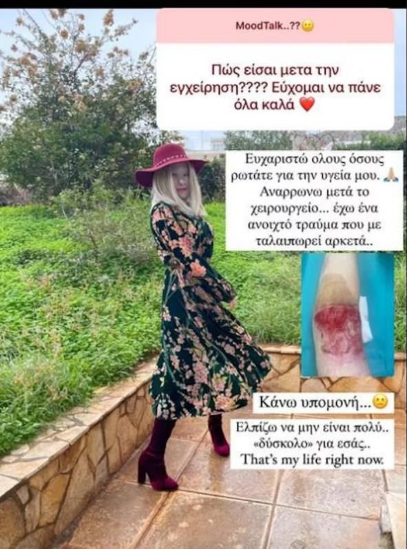 H ίδια απάντησε σε ερωτήσεις των Followers της στο Instagram και, μεταξύ άλλων, αποκάλυψε πότε θα βγάλει τη μάσκα. Έδωσε πληροφορίες σχετικά με την πορεία της υγείας της και συγκεκριμένα ανέφερε ότι αναρρώνει μετά από ένα χειρουργείο που έκανε.