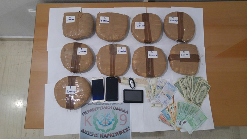 Συγκεκριμένα, σε έλεγχο που διενεργήθηκε στην πύλη του λιμένα εξωτερικού, από προσωπικό της ομάδας Κ9/Περιφερειακής Δίωξης Ναρκωτικών με τη συνδρομή στελεχών του Γραφείου Ασφάλειας της οικείας Λιμενικής Αρχής και κατόπιν ένδειξης αστυνομικού σκύλου Κ9, βρέθηκε στο Ι.Χ.Ε. όχημα που οδηγούσε ο 65χρονος αλλοδαπός με συνοδηγό την 72χρονη αλλοδαπή, εντός ειδικά διαμορφωμένης κρύπτης στο κάτω μέρος του δαπέδου, δεξιά και αριστερά από τα καθίσματα οδηγού και συνοδηγού, ποσότητα ναρκωτικής ουσίας ηρωίνης, συσκευασμένη σε εννέα (09) δέματα, τυλιγμένα σε σελοφάν, συνολικού μικτού βάρους εννέα κιλών και εκατόν ογδόντα γραμμαρίων (9,180 kg).
