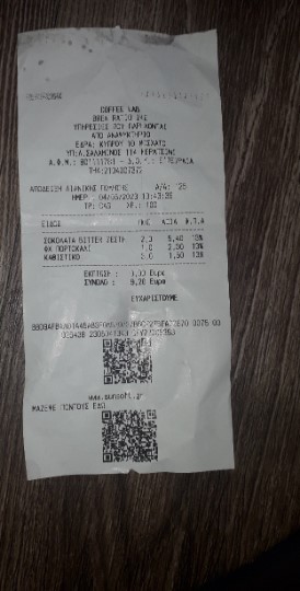 Μια απόδειξη από καφέ στο Κερατσίνι με χρέωση 1,5 ευρώ το κάθισμα και 13 % ΦΠΑ.