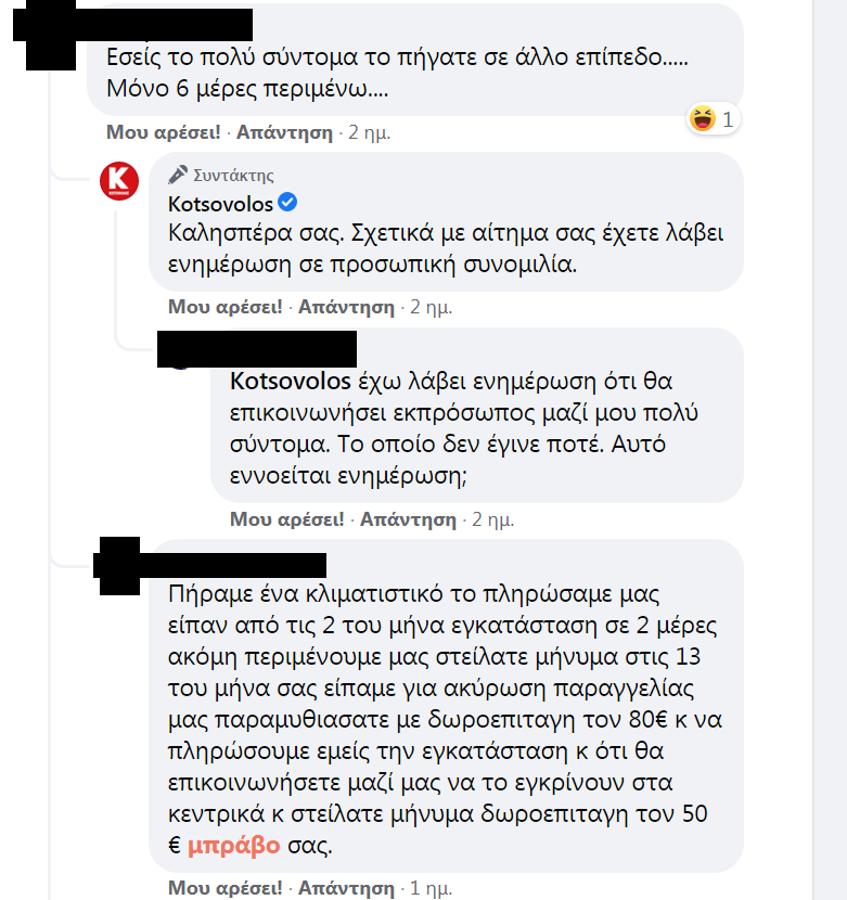 Καταγγελίες για την εξυπηρέτηση πελατών στον Κωτσόβολο καταγράφονται κάτω από αναρτήσεις της επιχείρησης στο facebook.