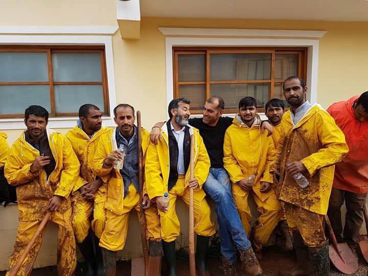 Σε αυτή εικονίζονται μέλη της Πακιστανικής Κοινότητας, που έσπευσαν σαν εθελοντές στις λάσπες της Μάνδρας.