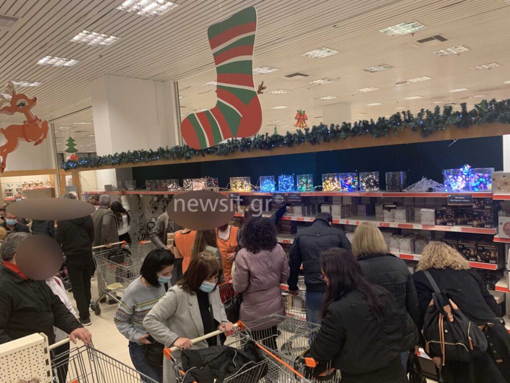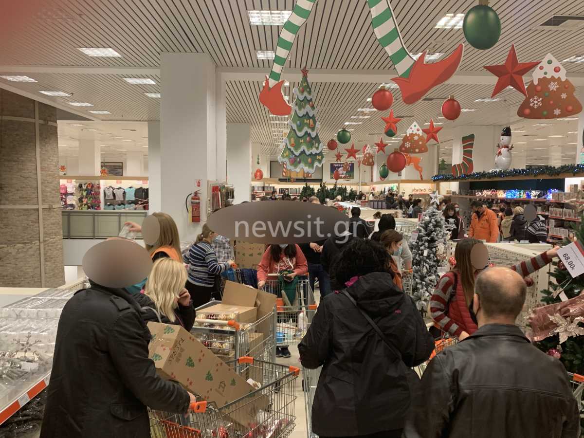 Άλλωστε, από σήμερα επιτρέπεται και η πώληση χριστουγεννιάτικων ειδών και από σούπερ μάρκετ. Οι εικόνες που θα δείτε είναι αποκαλυπτικές. Άνθρωποι να ψωνίζουν χωρίς καμία απόσταση. Κόσμος πολύς σαν παραμονή Χριστουγέννων…