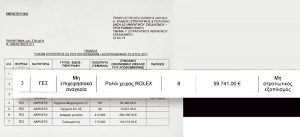 Το έγγραφο του υπουργείου με την πώληση των Rolex