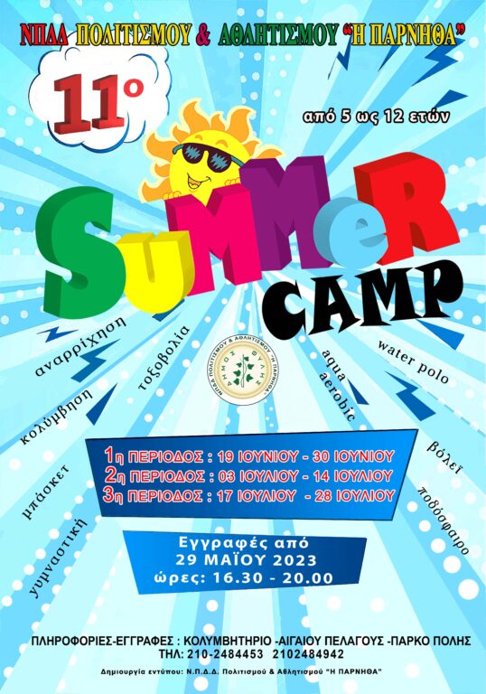 Έως τη Δευτέρα 29 Μαΐου μπορούν να δηλώσουν συμμετοχή οι ενδιαφρόμενοι για το καλοκαιρινό camp του ΝΠΔΔ Πάρνηθα.