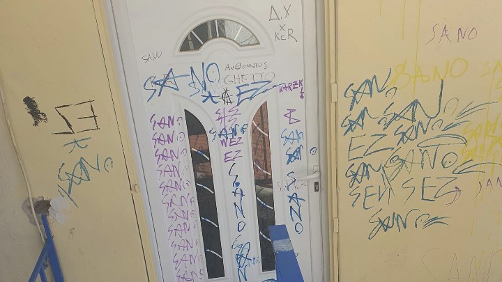 Τους νέους βανδαλισμούς αποκάλυψε δίνοντας τις σχετικές φωτογραφίες στη δημοσιότητα, ο πρόεδρος της κοινότητας κος Μιχάλης Δράκος, αναφέροντας χαρακτηριστικά: «Αυτή είναι η εικόνα στις πόρτες του Δημαρχείου. Τι γράφουν; Άσ’το καλύτερα. Η ανατροφή και η παιδεία προέρχεται από το σπίτι του καθενός. Να τους… χαίρεστε κι από τους γάμους τους!».