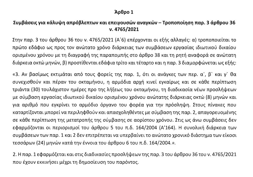 Να σημειωθεί ότι, σύμφωνα με το άρθρο 36 (παρ.1) του ν. 4765/2021 που επικαλείται η τροπολογία: