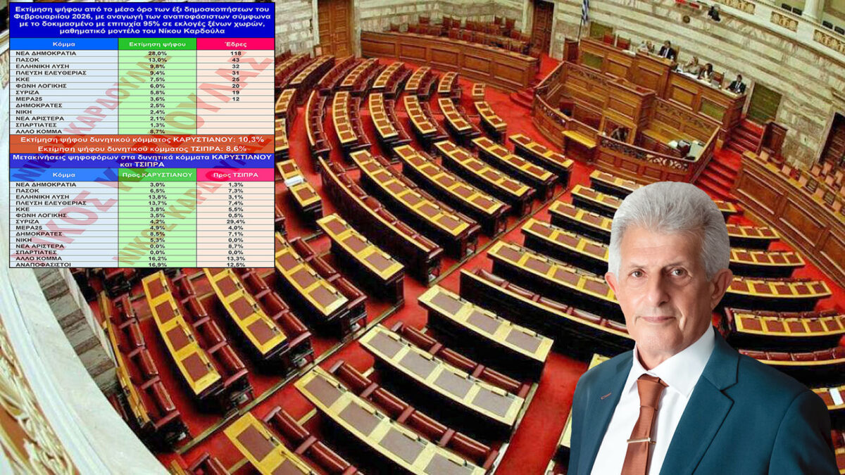 Καρδούλας*: Τα ποσοστά των κομμάτων από το μέσο όρο έξι δημοσκοπήσεων