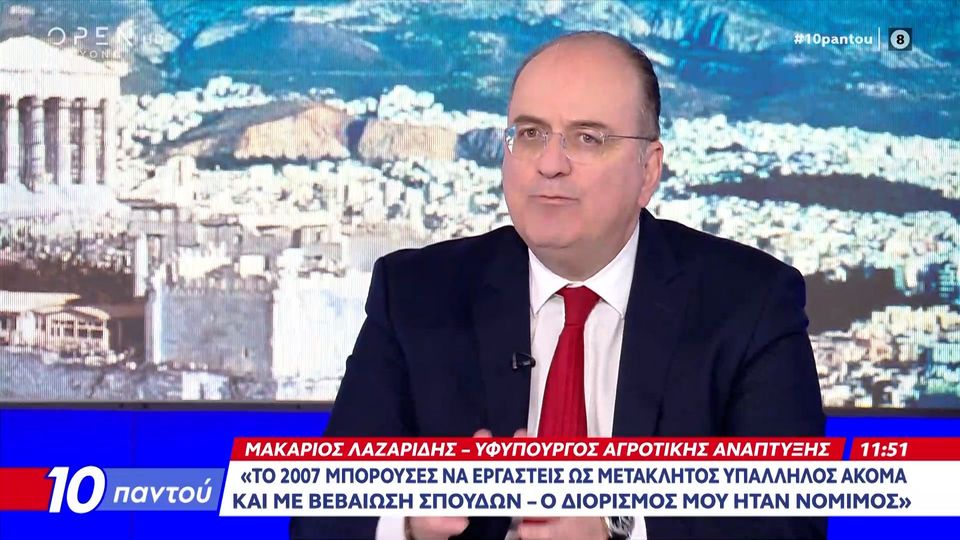 Ο Μακάριος Λαζαρίδης βρέθηκε καλεσμένος στην εκπομπή «10 Παντού» και μίλησε για τον διορισμό του ως ειδικού επιστήμονα το 2007 χωρίς πτυχίο ΑΕΙ, για τον δεύτερο διορισμό του το 2013 ως ειδικός σύμβουλος στο γραφείο της γενικής γραμματείας ισότητας , ενώ απάντησε και στην αντιπολίτευση που τον καλεί να παραιτηθεί.