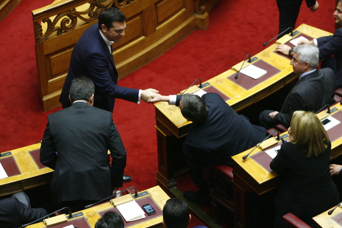 Απών από τη διαδικασία ήταν ο υπουργός Οικονομικών, Γ. Βαρουφάκης, ο οποίος λείπει στο εξωτερικό.