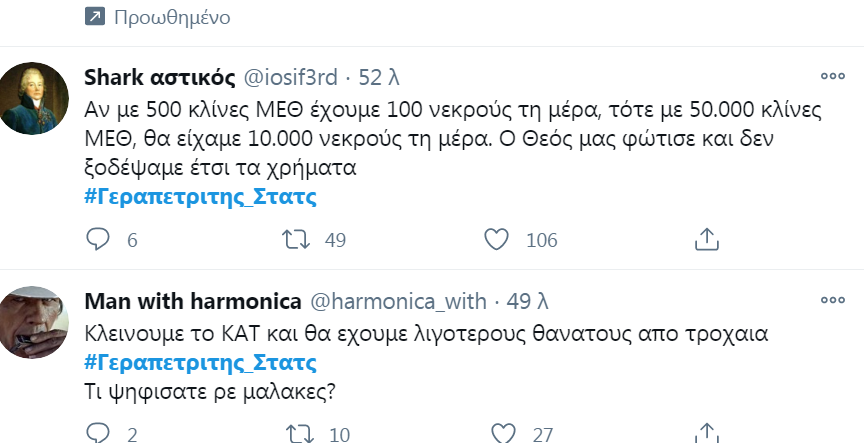 Χαμός στο twitter μετά τη δήλωση του υπουργού Επικρατείας, Γιώργου Γεραπετρίτη, πως αν είχαμε 5000 ΜΕΘ θα είχαμε περισσότερους νεκρούς (βίντεο εδώ).