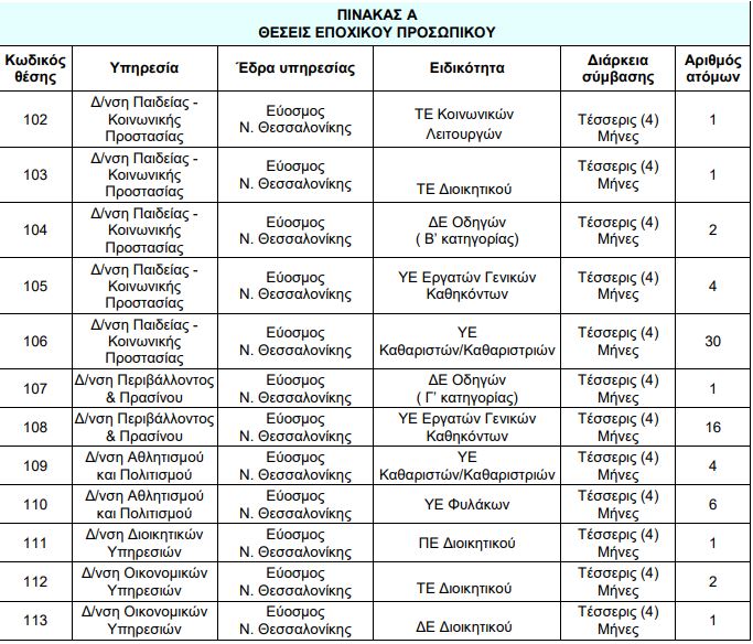 Ο Δήμος Κορδελιού-Ευόσμου ανακοινώνει την πρόσληψη εβδομήντα (70) ατόμων µε σχέση εργασίας Ιδιωτικού Δικαίου Ορισμένου Χρόνου, διάρκειας τεσσάρων (4) μηνών, για την αντιμετώπιση κατεπειγουσών πρόσκαιρων αναγκών των Διευθύνσεων του Δήμου.