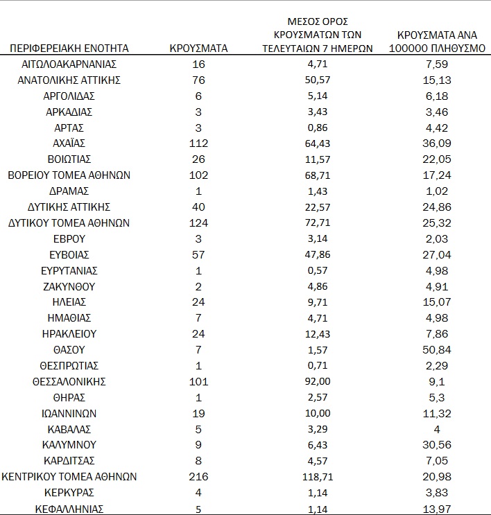 Δείτε αναλυτικά την διασπορά του κορονοϊού ανά περιφέρεια σύμφωνα με τα στοιχεία του ΕΟΔΥ: