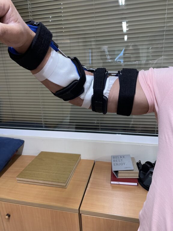 Η κινητοποίηση του αγκώνα αρχίζει σε σύντομο χρονικό διάστημα μετά τη χειρουργική επέμβαση με τη βοήθεια αρθρωτού νάρθηκα.